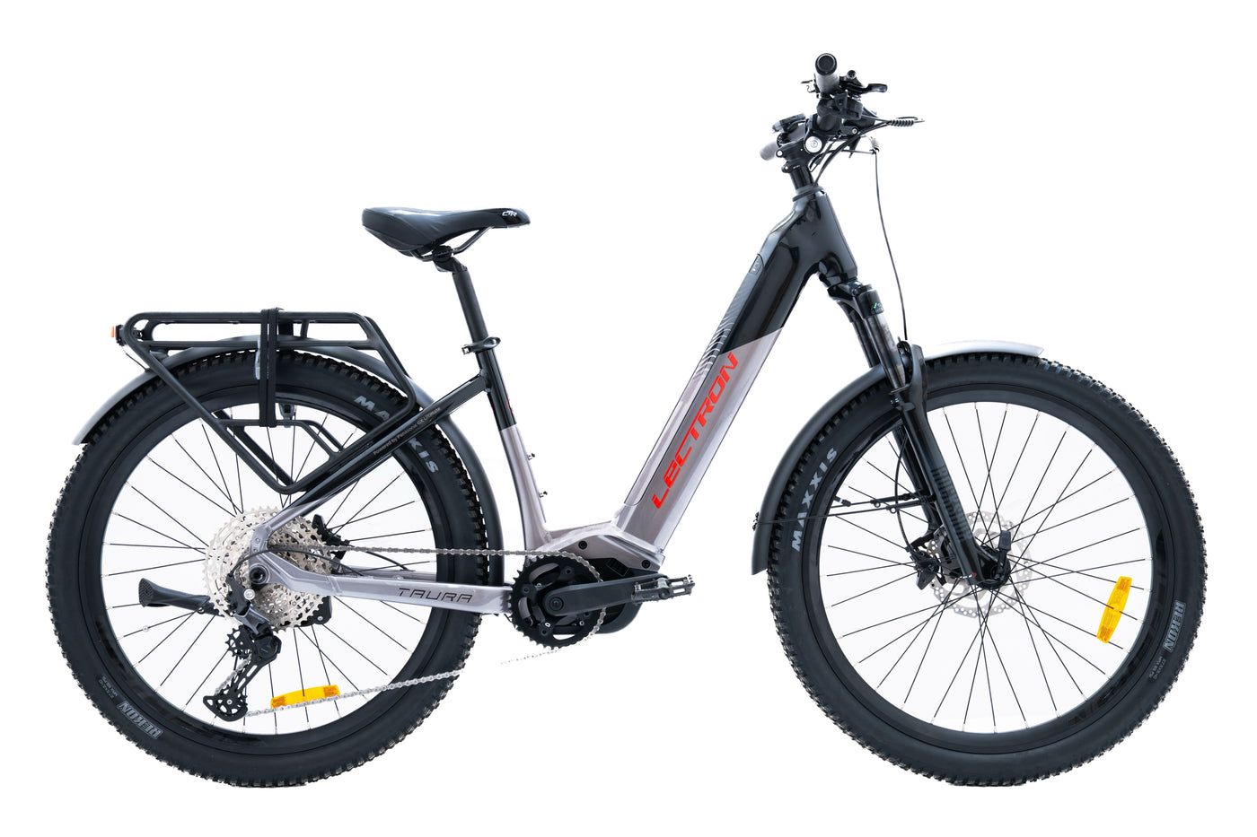 Watch out, because the Lectron Taura PSX Pro 17" Dark is here to redefine your e-mountain bike experience! With a massive 800 Wh battery and a top-of-the-line Panasonic GX Ultimate motor, you'll be the king of every trail, while the 12-speed Shimano Deore and Rock Shox Recon fork will give you absolute control and comfort. Get ready for a ride that will take your breath away - even if you have to wait until November 2025, trust us, it's worth it!